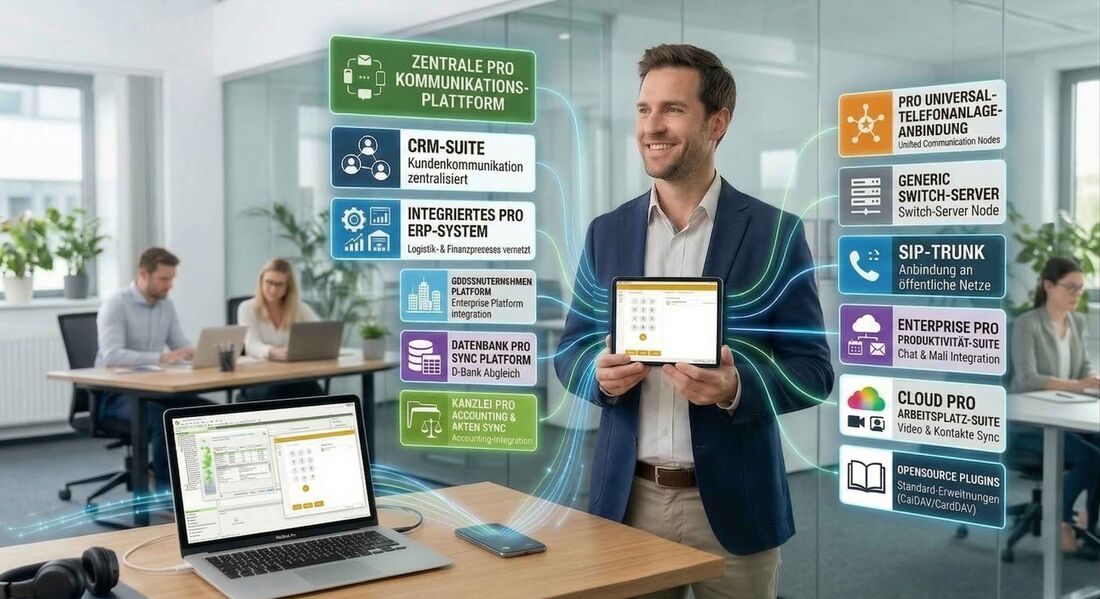 Das Smart-SIP-Phone ist nicht nur ein Endpunkt, sondern ein intelligenter Hub für Ihre gesamte Unternehmenskommunikation. Wir wissen, dass moderne Arbeitswelten von Vernetzung leben. Deshalb haben wir eine offene, modulare Architektur entwickelt, die es ermöglicht, das Smart-SIP-Phone nahtlos in Ihre bestehende Software-Landschaft zu integrieren – heute und in Zukunft.